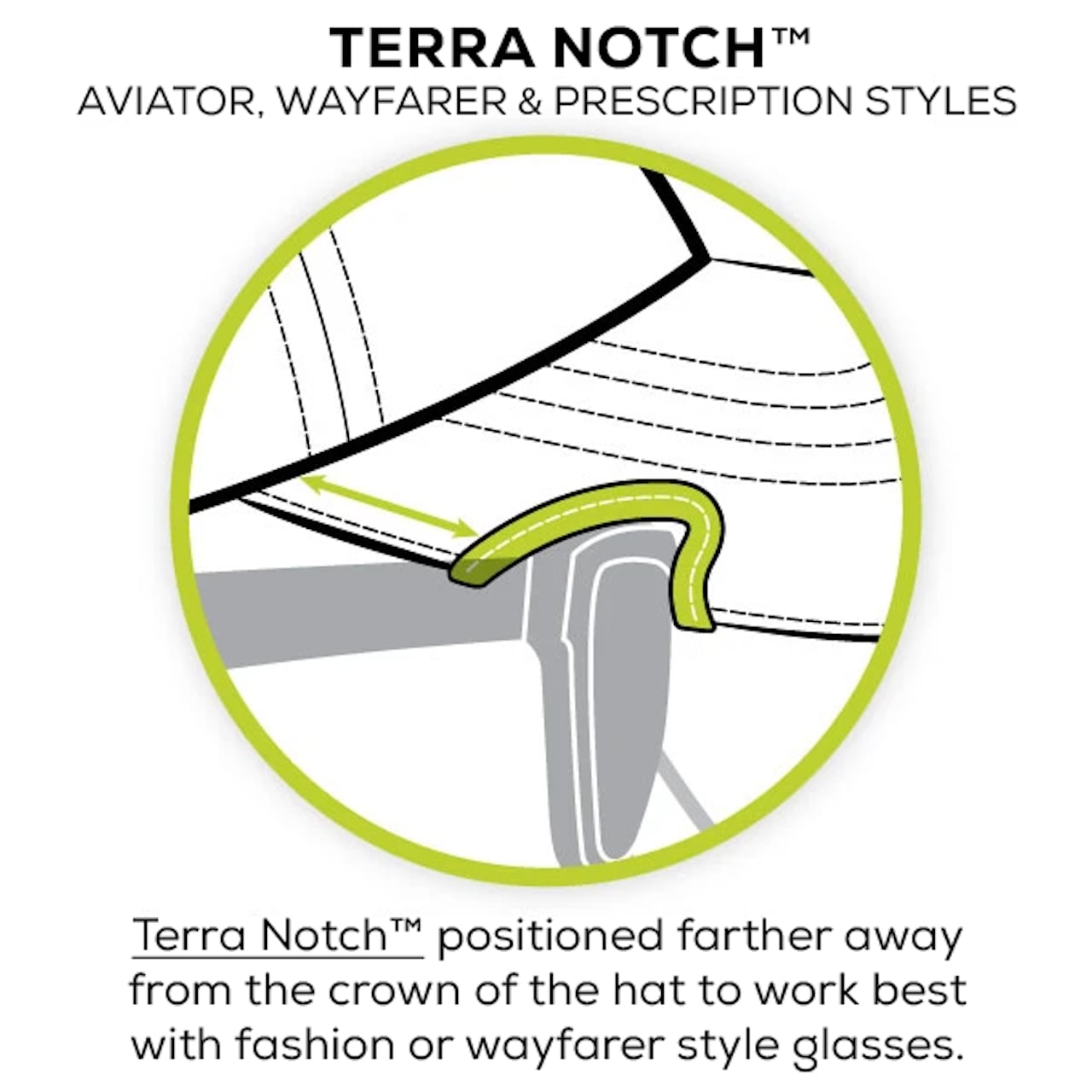 特許取得済みのバイザーの切り込みは、帽子とサングラスの干渉を解消し、最も安全で快適なフィット感を実現します。